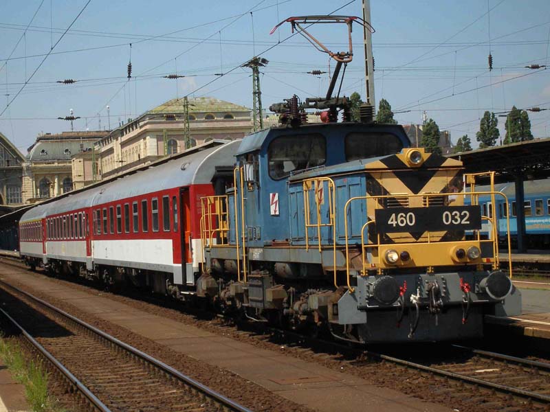 H-Start 460 032 rangiert slowakische Reisezugwagen in Budapest Keleti pu. (08.07.2016)