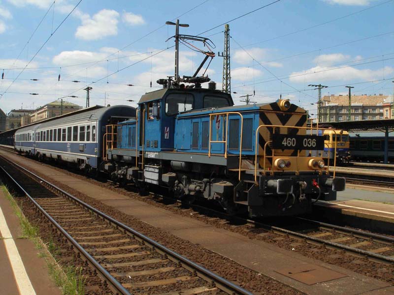 H-Start 460 036 rangiert rumänische Schlaf-/Liegewagen in Budapest Keleti pu. (08.07.2016)