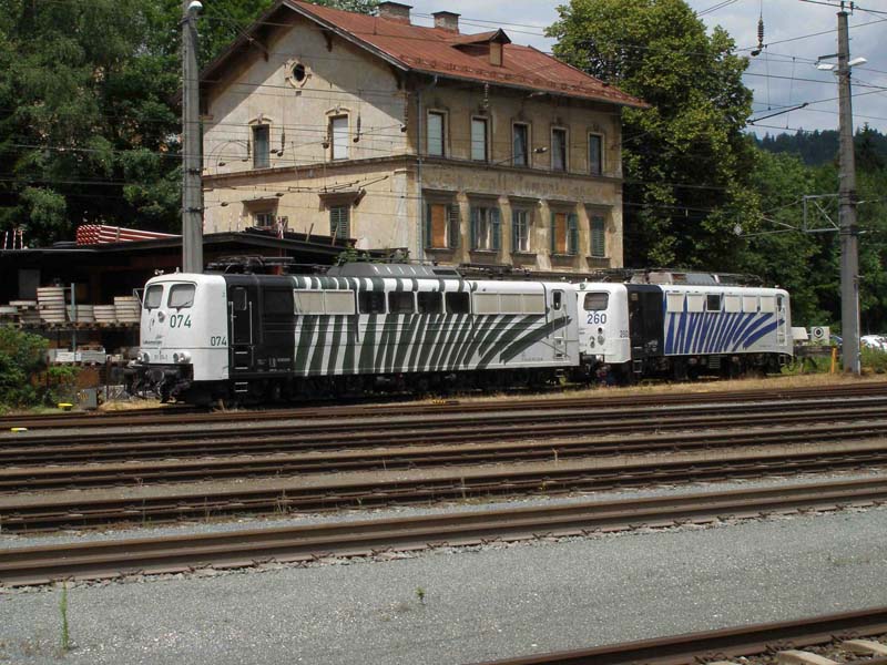 151 074 und 139 260 Lokomotion warten auf dem Abstellgleis in Kufstein auf neue Aufgaben.