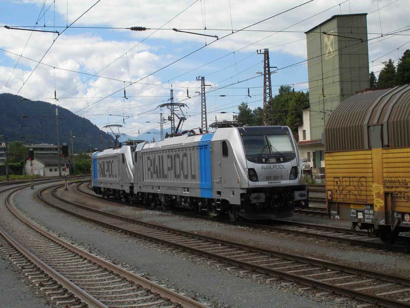 Die Railpool-Maschinen 187 301 und 187 302 übernehmen diesen Güterzug in Kufstein und werden ihn zum Brenner bringen.