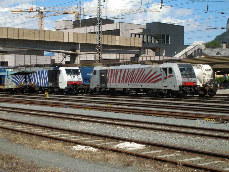 186 444 Lokomotion kommt aus der Werkstatt und setzt sich vor 189 914, um gemeinsam den Brenner in Angriff zu nehmen.