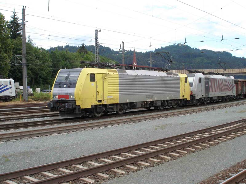 189 926 (Dispo in Gelb) hat sich Verstärkung mit der 186 285 geholt und bespannt nun wieder den Ton-Zug.