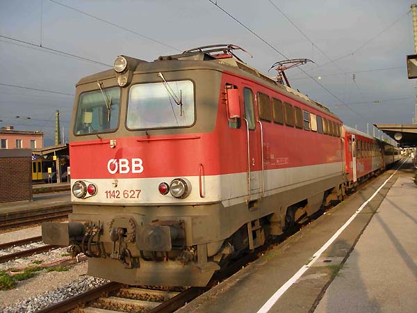 Freilassing 10.09.2015: ÖBB 1142 627 wartet m Bahnhof Freilassing auf die Abfahrt nach Salzburg.