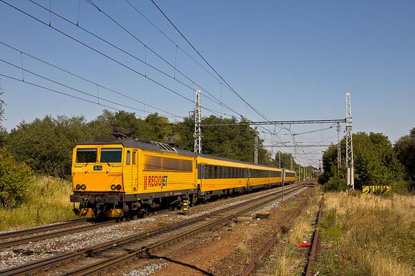 Das tschechische Eisenbahnnetz bietet an vielen Stellen ein buntes Geschehen. Ganz besonders jedoch in jenem mit Gleichstrom elektrifizierten Streckenabschnitt zwischen Prerov und Hranice, wo sich die Achsen nach Prag, in die Slowakei sowie nach Polen auf zwei Gleise vereinigen. Die Konsequenz daraus ist ein sehr hohes Zugsvolumen, bunt durchgemischt mit unterschiedlich lackierten Triebfahrzeugen unterschiedlicher Betreiber.