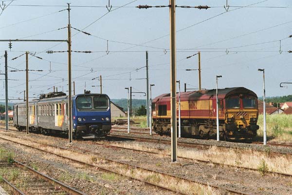 Nachmittags dann der obligatorische Besuch am großen Rangierbahnhof von Gevrey bei Dijon. Beim letzten Mal hingen überall Protesttransparente gegen die drohende Schließung, heute nichts dergleichen, aber etwas Zugaufkommen.