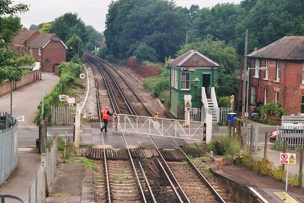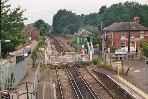 Eine zweigleisige mit Stromschienen elektrifizierte Strecke läuft durch den Ort und schneidet auch zwei Strassen. An einer stehen normale Einrichtungen, wie wir sie auch als Schranke kennen. Die zweite Strasse ist mit einem Wärterhäuschen und zwei Schwenktoren ausgerüstet. Letztere reichen komplett über die Strassenbreite beziehungsweise über die Gleisanlagen und werden manuell bedient. Gleich östlich des BÜ ist der Haltepunkt Chatham.