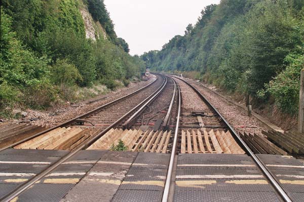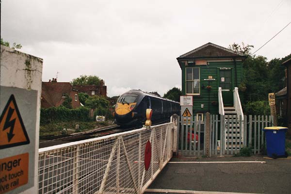 Während unseres Englandurlaubes führte mich meine Frau auch nach Canterbury/Kent. Auf dem Weg dorthin erspähte ich aus dem Augenwinkel (trotz Konzentration auf den Linksverkehr) eine Art Gartentor quer über eine Nebenstraße. Nix Besonderes, wir sind ja in England, dachte ich, und just in dem Moment huschte ein Zug dahinter vorbei.