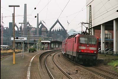 Am nächsten Tag wieder ein Abstecher nach Völklingen, allein, das Wetter ist hundsmiserabel mit kaltem Regen und Wind. Und keine Roheisentransporte zum Aufwärmen, nur die „üblichen Verdächtigen“ in Form von V90 und 143ern sowie der Quietschies.