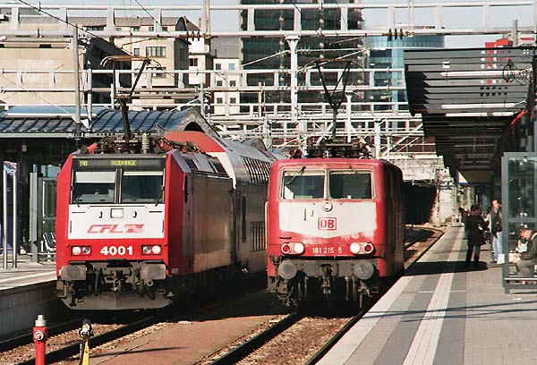 Im Bahnhof herrscht buntes Treiben, die Bauarbeiten sind immer noch im Gang, allerdings nimmt das Projekt langsam Formen an. Teilweise sind auch schon die neuen Bahnsteigdächer aufgebaut. Ich mache erstmal eine kurze fotografische Bestandsaufnahme, bevor ich mich auf den angekündigten IC aus Norddeich konzentriere. Mehrere 4000er der CFL sonnen sich an den Bahnsteigen, die Gumminasen der SNCB sind durch den 521 vertreten.