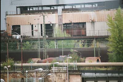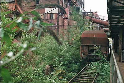 Das Gleis für die Abfuhr des Roheisens zeigte sich recht gut bewachsen, die Natur holt sich hier Terrain zurück. Man riecht zwar noch die Schwerindustrie, aber es fällt mittlerweile schwer, sich in dieser Kulisse Betrieb vorzustellen. Das wird durch einige Videovorführungen mit Szenen aus der aktiven zeit der Hütte aber sehr erleichtert.
