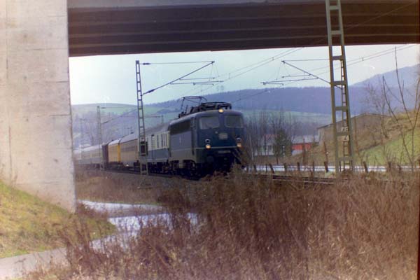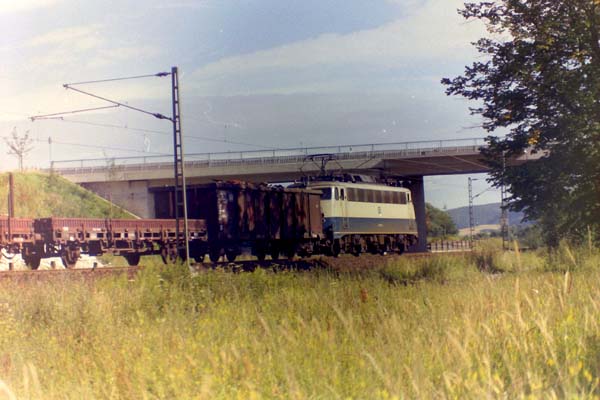 Und hier dann das „Blaue Wunder“, 110 467, aus der Hüfte geschossen, hat ein buntes Sammelsurium am Haken, Dezember 1987.