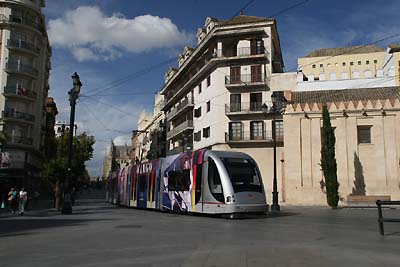 Ein Urlaub an der Algarve brachte meine ersten Bilder der CP. Beginnen möchte ich allerdings mit der Straßenbahn von Sevilla/Spanien. Die Strecke hat zur Zeit nur vier Haltestellen und verkehrt vom Plaza Nueva über Archivo de Indias und Puerta de Jerez zum Prado de San Sebastián. Dieser Streckenabschnitt führt direkt durch die Innenstadt. Erweiterungen sollen 2011 in Betrieb gehen. Der Wagenpark besteht aktuell aus 7 Niederflur Tw des spanischen Herstellers CAF.