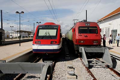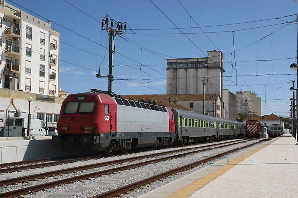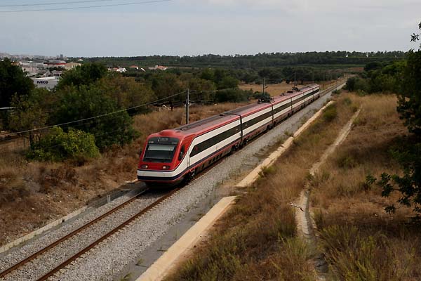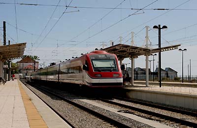 Alfa Pendular 544 002 und Eurosprinter Urahn 765 606. Die Alfa Pendular wurden von Alstom basierend auf den italienischen ETR 480 gebaut. Die Leistung der Triebzüge beträgt 4000 KW. Die hydraulische Neigetechnik der sechsteiligen Züge kann die Wagenkästen bis zu 8° neigen. Zwischen Lissabon und Faro wird die Höchstgeschwindigkeit von 225 km/h erreicht.