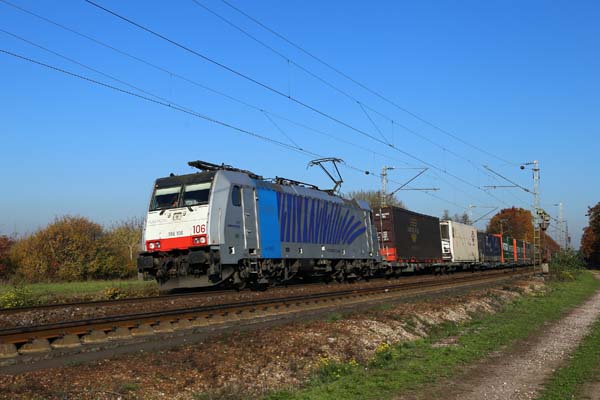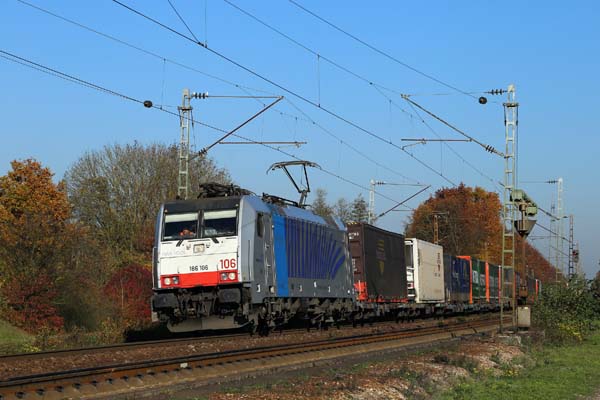 186 106 RAILPOOL-LOCOMOTION-BLS Cargo mit KV am 5. November 2015 bei Waghäusel