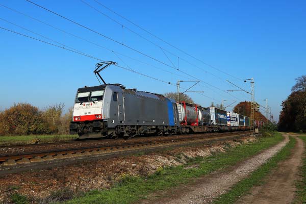 186 251 RAILPOOL-BLS Cargo mit KLV am 5. November 2015 bei Waghäusel