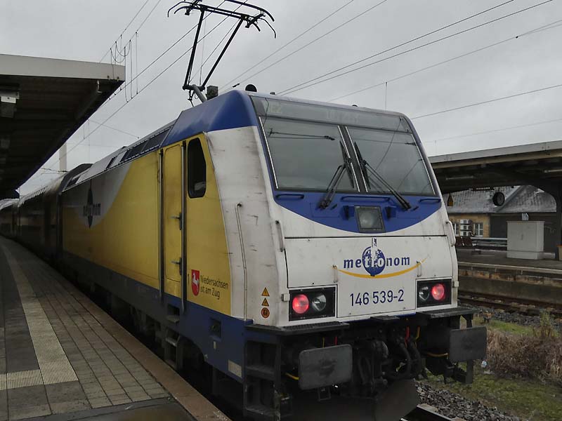 10.01.2019 Kürzel D-ME verschwindet von den Metronom-Fahrzeugen .. 146 539-2 D-BTH Metronom vor der Abfahrt nach Uelzen. Bei immer mehr Doppelstockwagen und Loks von Metronom wechselt die Halterkennung von bisher ME auf BTH. Göttingen, 09.01.2019... |