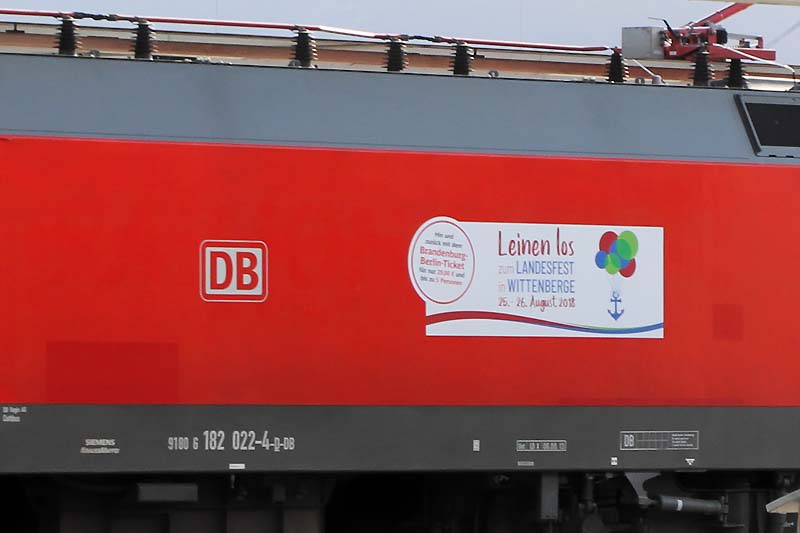 21.08.2018 Werbeaufkleber der 182 022.. Nachdem der Werbeaufkleber der Reihe 182 im aktuellen Lok-Vogel nicht so gut zu erkennen war, anbei noch nachgereicht ein besseres Bild des Aufklebers. Aufgenommen auf der 182 022 am 19. August 2018 im Berliner Ostbahnhof. ... |