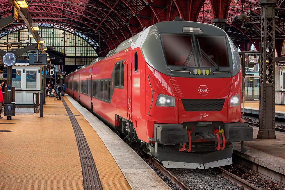 ![]() So könnte es in einigen Jahren aussehen, wenn eine Reihe von Talgo-Waggons auf dem Bahnsteig des Kopenhagener Hauptbahnhofs vorfährt. (Talgo) |