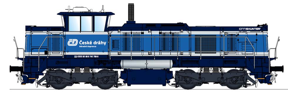 ![]() Visualisierung des EffiShunter 1000M in den Farben der Tschechischen Staatsbahn. (CZ LOKO) |