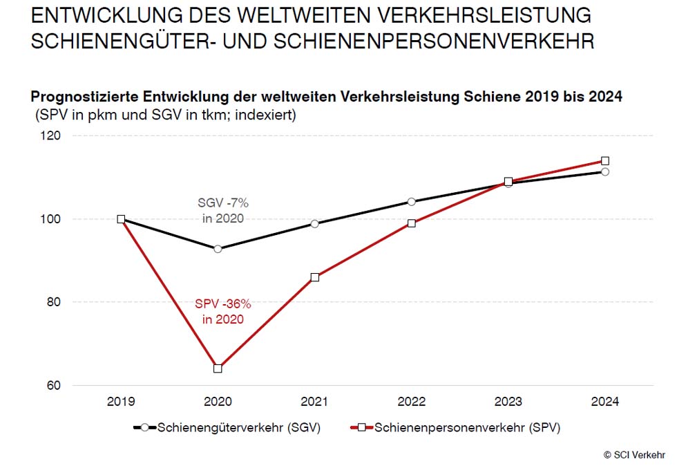 18.09.2020 Die COVID-19-Krise bringt den weltweiten Bahnmarkt in Turbulenzen .. Klimaschutz Haupttreiber des künftigen WachstumsNeue Studie von SCI Verkehr GmbH „Worldwide Market for Railway Industries 2020“Das aktuelle weltweite Marktvolumen für Bahntechnik liegt für das Jahr 2019 bei 190,9 Mrd. Euro und wird nach Einschätzung von SCI Verkehr bis zum Jahr 2024 jährlich um 2,2% auf 213,2 Mrd. Euro wac... |