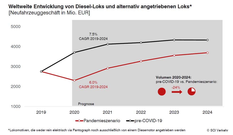 31.08.2020 Weltweite Nachfrage nach D-Loks bricht durch COVID-19 deutlich ein.. Die Pandemie verstärkt den globalen Trend zur Reduzierung alter DieselflottenAngesichts der COVID-19-bedingten weltweiten Unsicherheiten in der Bahnindustrie erwartet SCI Verkehr einen starken Rückgang des Neugeschäfts von Diesellokomotiven (-24% in den Jahren 2020-2024). In vielen Ländern wird die Pandemie anvisierte Beschaffu... |
