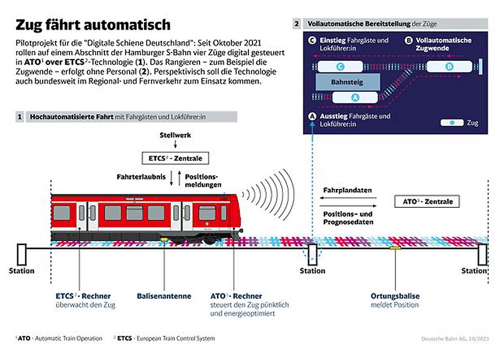 12.10.2021 Weltpremiere: DB und Siemens präsentieren ersten automatisch fahrenden Zug.. S-Bahn Hamburg: Hansestadt wird Vorreiterin für digitalen Bahnbetrieb • Fahrgäste profitieren von größerem Zugangebot und mehr PünktlichkeitDie Deutsche Bahn (DB) und Siemens haben den weltweit ersten Zug entwickelt, der im Eisenbahnverkehr von allein fährt. Dr. Richard Lutz, Vorstandsvorsitzender der DB, und Dr. Roland Bus... |