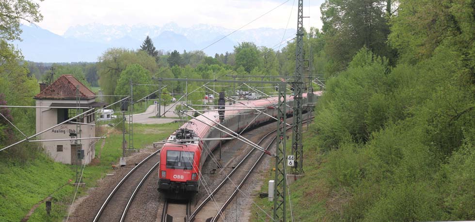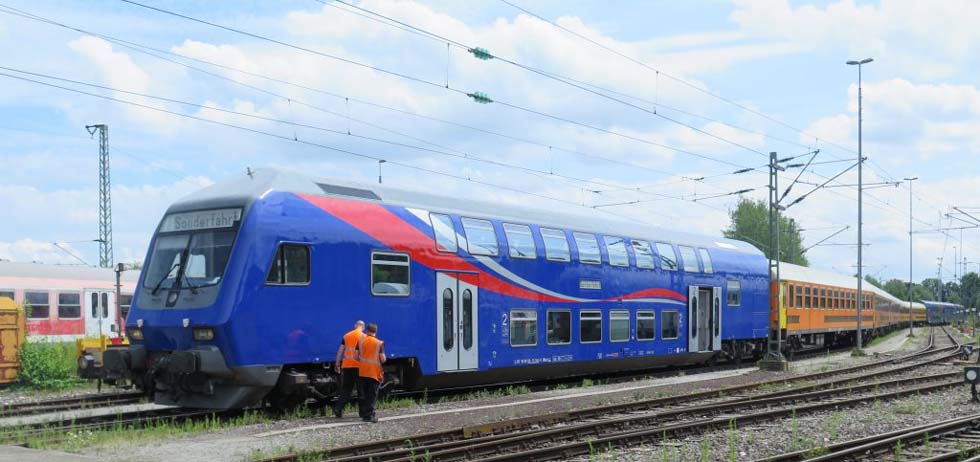 ![]() Steuerwagen der SRI in einer 10-Wagen-Einheit und schiebender E-Lok 145 087 am 27.7. nach der Rückkehr von einer Probefahrt. |