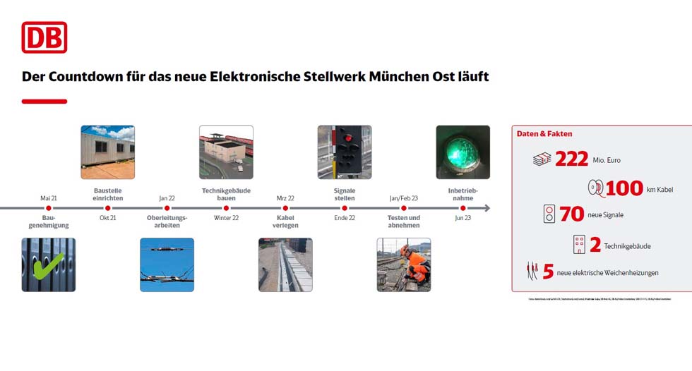 15.07.2021 Mehr Qualität für die S-Bahn: Der Countdown für das neue Stellwerk am Ostbahnhof läuft.. DB und Bund investieren 222 Millionen Euro • Arbeiten starten im Oktober 2021 • Fahrgäste profitieren ab Mitte 2023 von pünktlicheren ZügenDer Start für eines der wichtigsten Bahnausbau-Projekte in München steht kurz bevor: Ab Oktober beginnt die DB mit dem Bau des neuen elektronischen Stellwerks am Ostbahnhof. Über die n... |