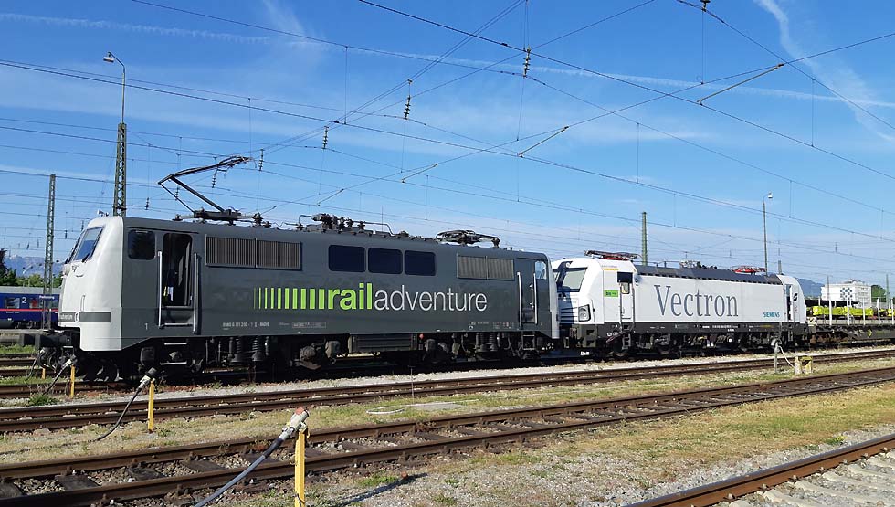 04.06.2021 193 930 wieder mal unterwegs zu Tests.. Am 04. Juni 2021 überführte die Railadventure 111 210 den Test-Mess-Vectron 193 930 zusammen mit Loco-Buggies, hier in Freilassing. ... |
