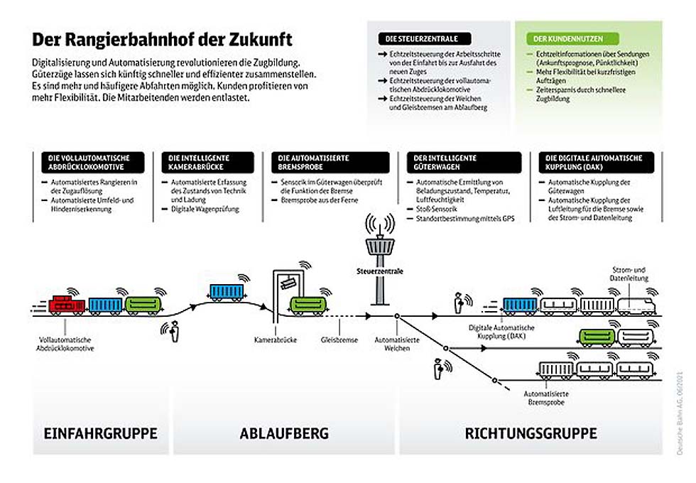 08.06.2021 Rangierbahnhof München-Nord wird der erste digitale Güterbahnhof Deutschlands.. Automatisierte Zugbildung: Güterzüge starten künftig deutlich schnellerTechnologieschub: BMVI fördert Rangierbahnhof der Zukunft • Kunden profitieren von schnelleren und häufigeren Abfahrten sowie mehr Flexibilität • Mitarbeitende werden von harter körperlicher Arbeit entlastetDB Cargo macht den Rangierbahnhof München-N... |