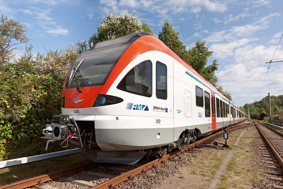 ![]() Elektrischer Triebzug vom Typ Flirt auf der RheingauLinie (RMV) |