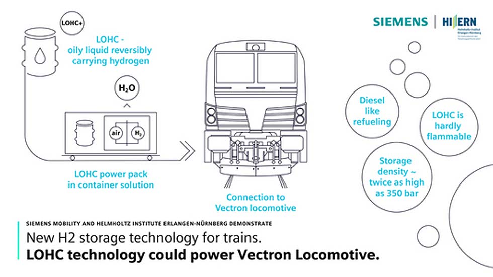 31.05.2021 Kooperation zum Einsatz von LOHC-Technologie im Schienenverkehr geplant.. Memorandum of Understanding (MoU) unterzeichnetSiemens Mobility und das Helmholtz-Institut Erlangen-Nürnberg für Erneuerbare Energien vereinbaren Zusammenarbeit zur Erforschung der Nutzung von Liquid Organic Hydrogen Carrier (LOHC) im SchienenverkehrWasserstofftechnologie im Schienenverkehr gewinnt eine immer größere Bedeutung,... |
