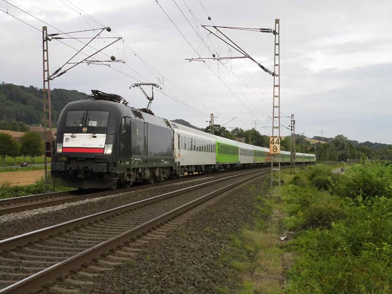 ![]() Godenau, 17. August 2019: 182 597 führt den Flixtrain südwärts. (Thomas Förster) |