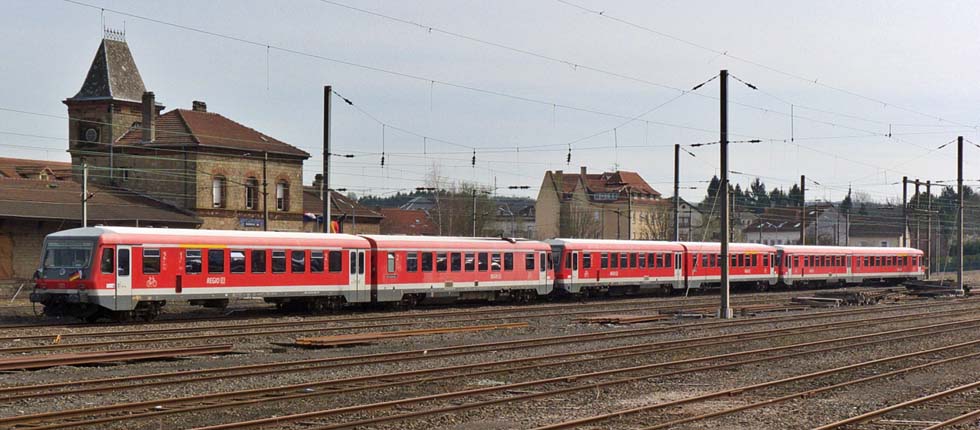 ![]() 628 594, 493 und 487 mit einem Sonderzug in Bouzonville (03.04.2015). |