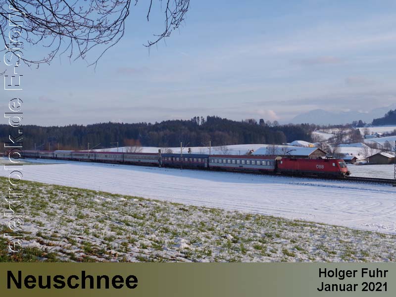 19.01.2021 E-Story: Neuschnee.. Anfang Januar gab es endlich wieder einmal Schnee im Alpenvorland. Diese Chance nutzte auch Holger Fuhr für ein paar Schneeaufnahmen mit Zügen. Das Ergebnis gibt es in der neuen E-Story: NeuschneeAktuell warten noch vier E-Stories auf die Einarbeitung.... |