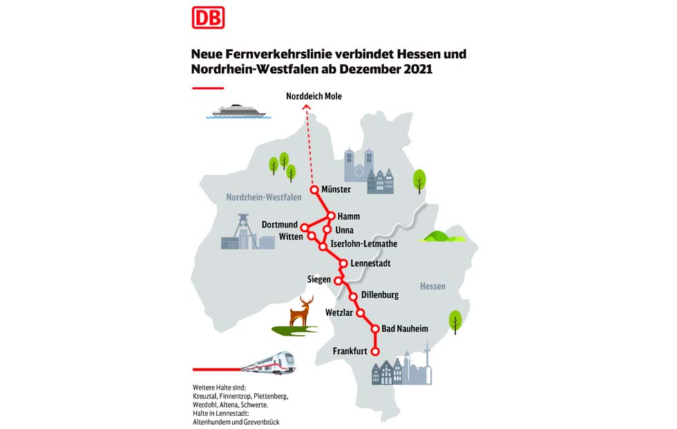 ![]() Neue Fernverkehrslinie verbindet Hessen und Nordrhein-Westfalen ab Dezember 2021 (Grafik DB AG) |