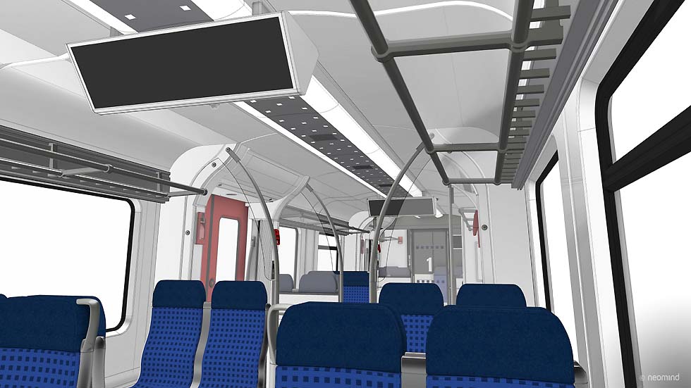 ![]() S-Bahnflotte erhält neues Innendesign sowie ein modernes Fahrgastinformations- und Infotainmentsystem und elektrische Steckdosen. (Neomind Design Studio) |