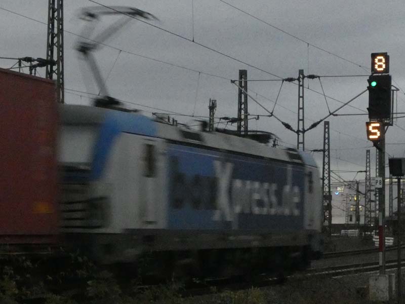 05.11.2019 Güterzüge über die SFS Göttingen - Hannover .. Auf der SFS Göttingen - Hannover finden seit einigen Tagen wieder reguläre Fahrten von Güterzügen, aber auch ICE statt. Die Fahrten starten gegen 17:00. Für Aufnahmen ist das aber nur noch suboptimal.193 xxx Boxxpress mit Containerzug wird um 16:50 von Gleis 8 auf die SFS geleitet. Das S am Signal steht in Göttingen für SFS ... |