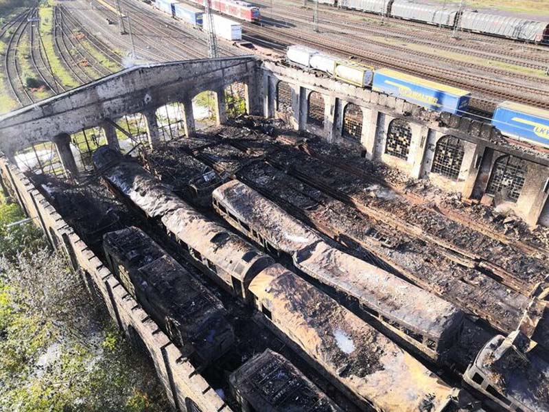 11.11.2019 Worms: Alter Lokschuppen brennt vollständig aus
