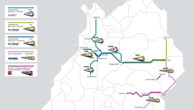 11.06.2019 Go-Ahead und Abellio nahmen am Sonntag den Betrieb mit Regionalzügen im Stuttgarter Netz auf.. Einführungsphase startet mit verbessertem Angebot für die FahrgästeSeit Sonntag (09.06.2019) an werden die Eisenbahnunternehmen Go-Ahead und Abellio die Nahverkehrszüge zwischen Karlsruhe und Stuttgart sowie zwischen Stuttgart und Aalen fahren, für die bisher die DB Regio zuständig war. Beide Unternehmen hatten die europaweit... |