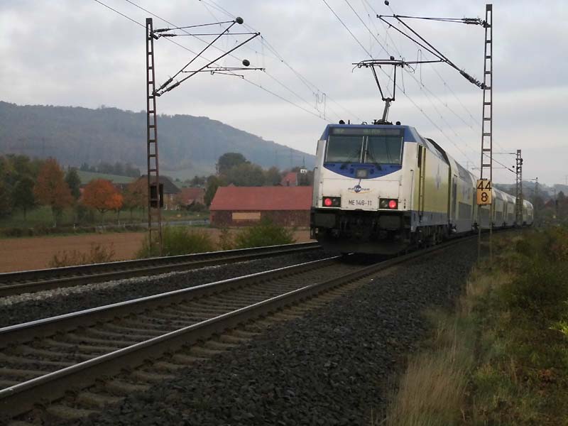 19.11.2018 HLB-Coradia Continental auf der RB 11.. Bis zum Fahrplanwechsel setzt die Hessische Landesbahn (HLB) auf der RB 11, F-Höchst – Sossenheim - Sulzbach - Bad Soden ET 1440 vom Typ Alstom Coradia Continental ein. Danach werden die Fahrzeuge auf der ab dann betriebenen RB 75 eingesetzt.Sulzbach, 17.11.18: 1440 344 ist in Richtung Frankfurt Höchst unterwegsDiese Nachricht... |