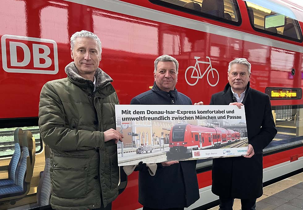 16.12.2024 Neue Züge für den Donau-Isar-Express: Mehr Platz und Komfort im Stundentakt.. Besseres Fahrplanangebot und angenehmeres Reisen für die Fahrgäste auf den Strecken München – Passau und Freising – Landshut • 25 neue Siemens-Züge Desiro HC mit bis zu 1140 Sitzplätzen im Einsatz • Moderne Ausstattung, WLAN und besserer HandyempfangDB Regio Bayern verbessert im Auftrag des Freistaats Bayern das Fahrpl... |
