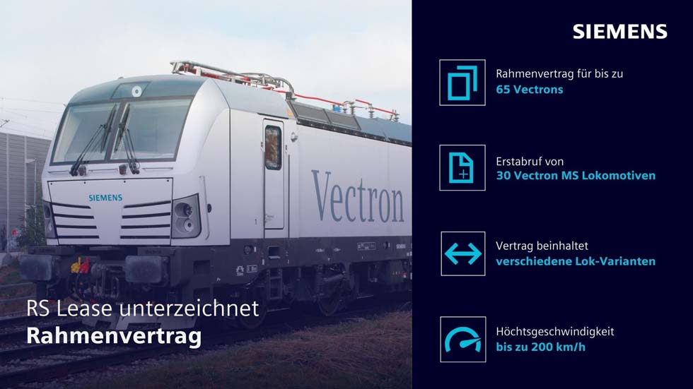 27.09.2024 Siemens Mobility: RS Lease erweitert Flotte mit bis zu 65 neuen Vectrons.. RS Lease, der führende private Vermieter von Schienenfahrzeugen der Slowakei und Siemens Mobility haben einen Rahmenvertrag über die Lieferung von bis zu 65 Vectron Loks unterzeichnet. Die Vereinbarung beinhaltet einen Fixabruf von 30 Lokomotiven der Bauart Vectron MS, optional können weitere 35 Loks der Varianten Vectron Multi ... |