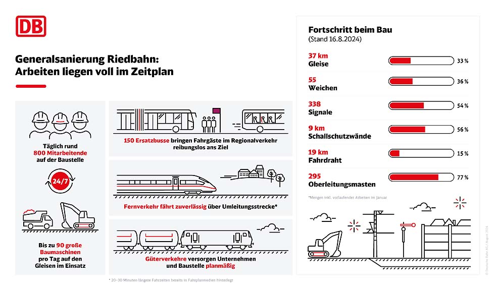 ![]() Infografik: Arbeiten an der Riedbahn liegen voll im Zeitplan (Deutsche Bahn AG) |