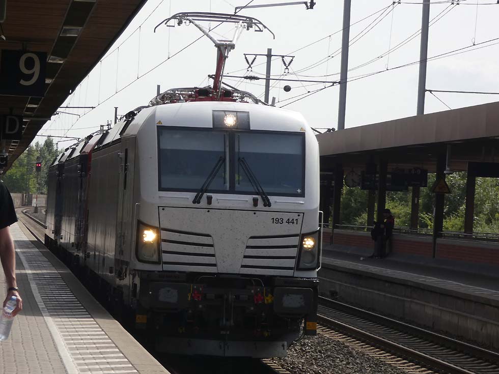 03.07.2024 Nur eine weitere Vectron-Überführung .. Am 29.06.2024 fuhr ein Lokzug mit 3 neuen Vectrons auf der SFS durch Göttingen nach Norden. Vorne fuhr die 193 441, gefolgt von einer Lok, deren Nummer ich nicht erkennen konnte. Nach der Farbgebung zu urteilen, handelte es sich aber wahrscheinlich um eine Lok für Sbbcargo. Den Schluss bildete 383 021-3.... |