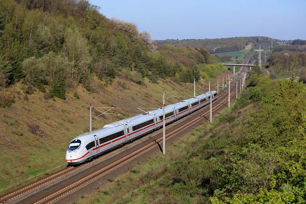 ![]() ICE des DB Fernverkehr unterwegs auf der Schnellfahrstrecke Köln - Rhein/Main. Hier bei Hümmerich - ICE 3neo Baureihe 408 in Richtung Frankfurt. (Deutsche Bahn AG / Georg Wagner) |