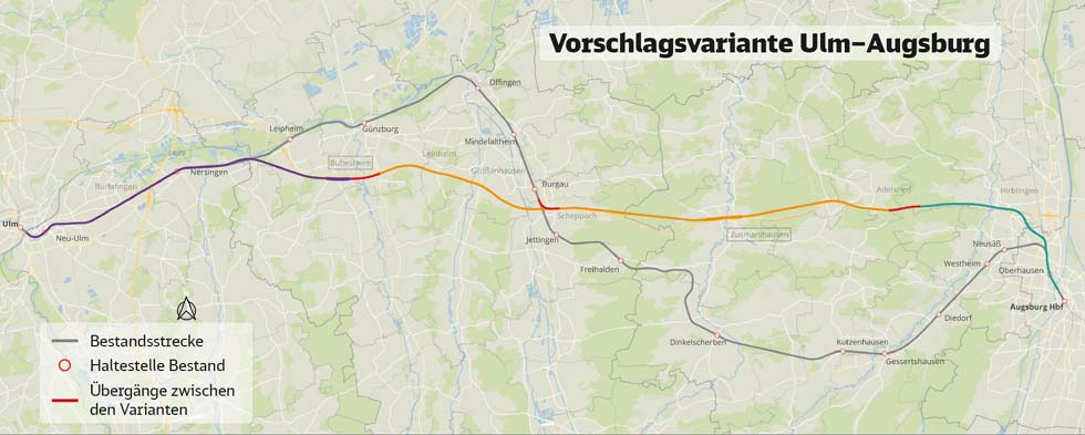 25.06.2024 Bahnprojekt Ulm–Augsburg: Vorschlagsvariante steht fest.. Variante ermöglicht schnelle Bahnverbindung, neuen Regionalzughalt und möglichst wenige Betroffenheiten • Auf der neuen Strecke sollen Fernverkehrs- und Güterzüge fahren • Variante wird 2025 dem Bundestag übergebenDie Deutsche Bahn (DB) hat heute ihre Vorschlagsvariante für das Bahnprojekt Ulm-Augsburg der Öffentlichkeit... |