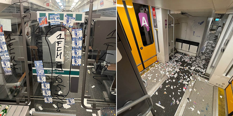 20.02.2024 Fußballfans aus Magdeburg zerstören mutwillig einen Siemens-Zug der ODEG .. Von wegen Sportsgeist und Fairness: stattdessen Zerstören, Sprühen, Saufen - AusrastenDie ODEG – Ostdeutsche Eisenbahn GmbH wurde am Wochenende Opfer von Vandalismus durch vermeintliche Fußballfans des 1. FC Magdeburg.Die Zugfahrt wurde für den Triebfahrzeugführer der ODEG zum AlbtraumLinie RE1: Berlin nach MagdeburgFreitag,... |