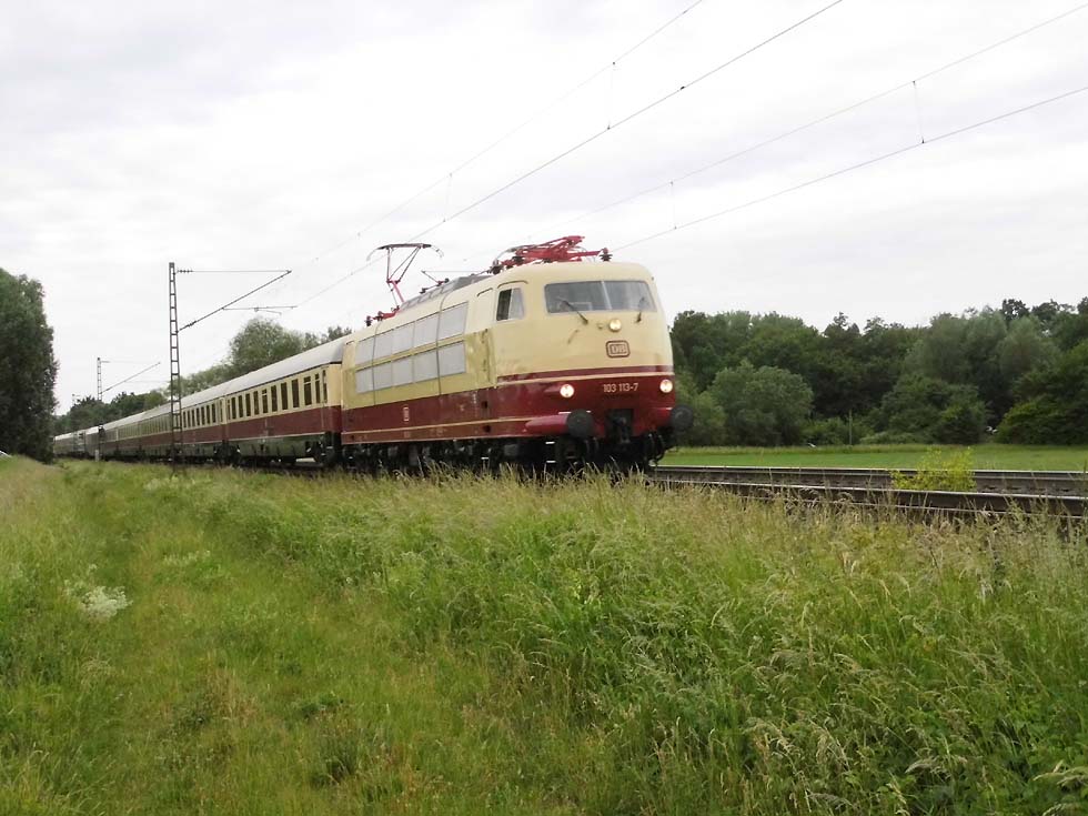 ![]() Elze, 11. Juni 2022: Freude über Freude.103 113 mit ihrem Sonderzug ist pünktlich, allein, die Sonne fehlt. (Thomas Förster) |