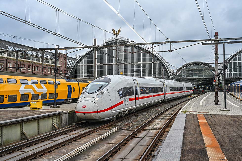 ![]() ICE 3neo im Bahnhof Amsterdam Centraal (Deutsche Bahn AG / Dirk Wittmann) |